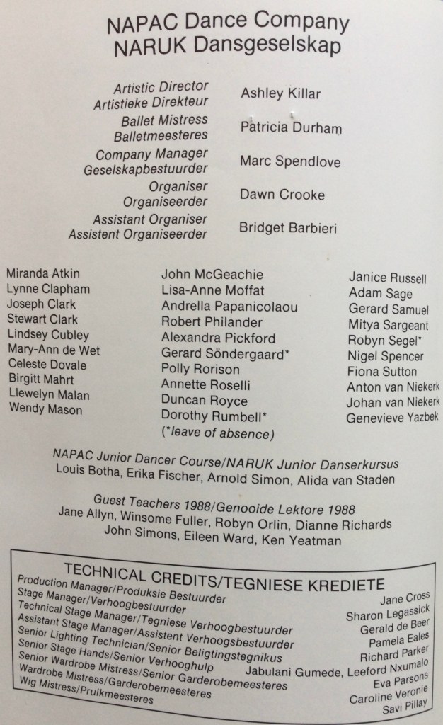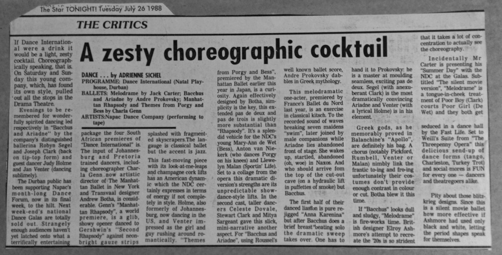 In 1988, a feature on Napac Dance Company’s first three years appeared in the arts magazine Scenaria. You can see it in the Press Cuttings pages. And South African TV showed Three Years On, a programme devoted to Napac Dance Company. Part 1 here and Part 2 here.