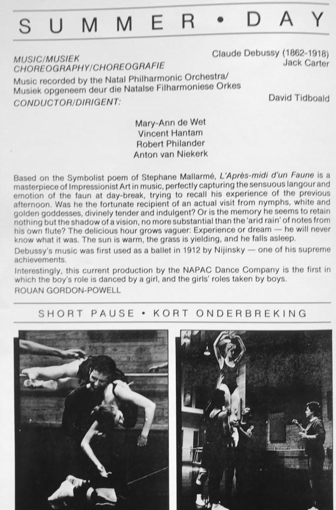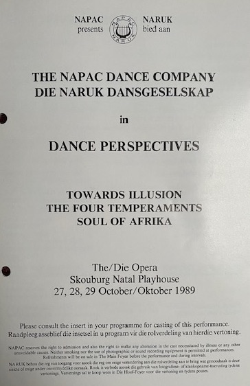 Dance Perspectives: Towards Illusion, The Four Temperaments, Soul of Africa Natal Playhouse Opera Theatre 17, 28, 29 October