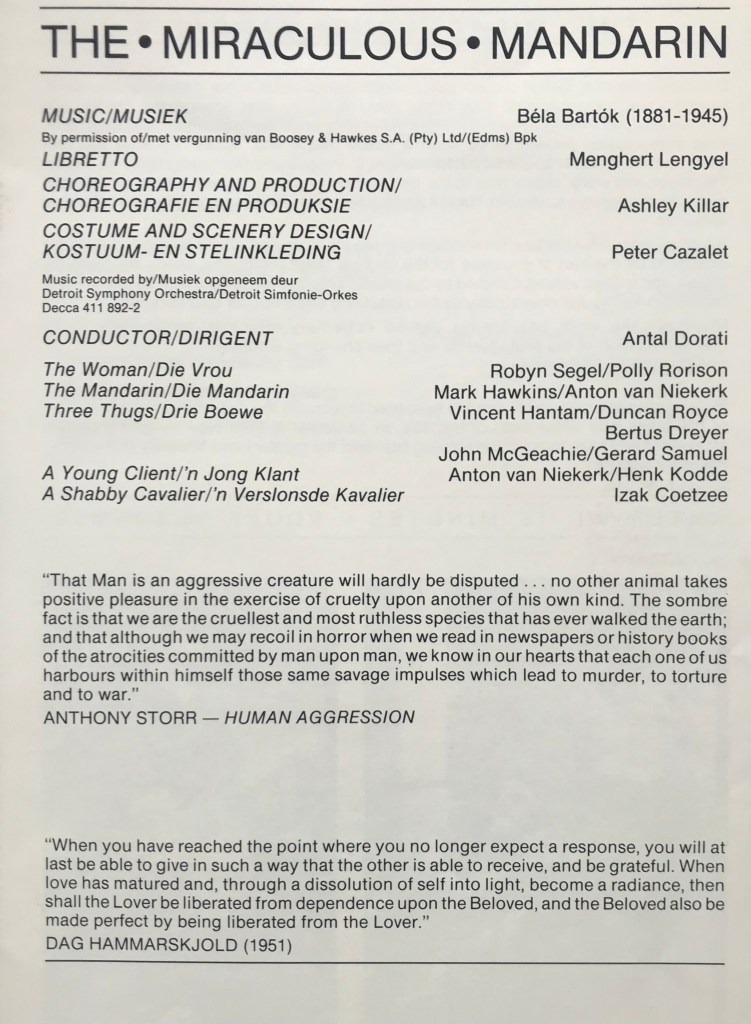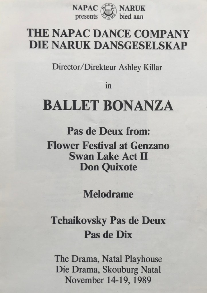 On tour (dates?) and at Natal Playhouse 14-19 November
