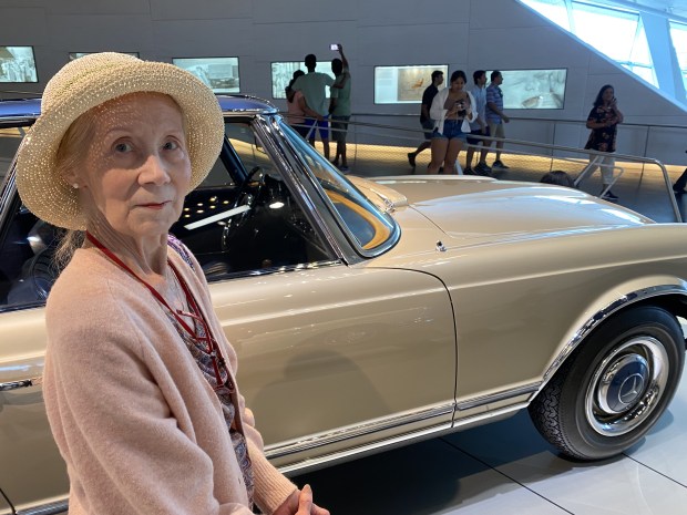 Jane is, as well as being a discerning ballet critic, a Mercedes fanatic (she once owned a very old and extremely big Merc in Cape Town), so we visited the museum (Stuttgart is is home of Bosch and Porsche, as well as Mercedes-Benz). Here she is with her dream car.