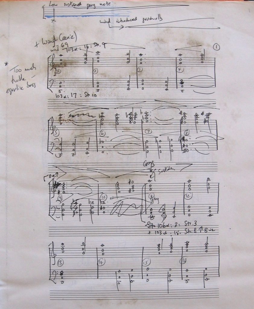 Reddy produced this electronic ballet score Dance of the Rain, also known by its Afrikaans title, Dans van die Reën, to choreography by Christopher Kindo in 1987, when he was working for the Napac Dance Company. It exists in the form of a tape and a handwritten manuscript of themes, comments and instructions. The newly published ACE score is a pdf facsimile of the manuscript, of which the first page is shown here, and the recording is the original one that was realised in NAPAC’s electronic music studio. Reddy dedicated the ballet to his wife, the ballerina Linda Smit, ‘and to our future child’, because she was pregnant at the time with their daughter, whom they would name, Lîla.